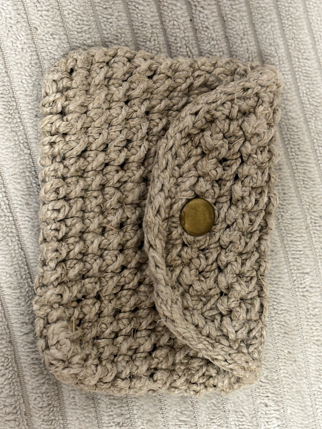 Ta ročno kvačkana drobižnica iz trpežne špage je čudovita kombinacija funkcionalnosti in preproste elegance. Zasnovana je tako, da varno shrani drobne predmete, ki jih želiš imeti vedno pri roki.